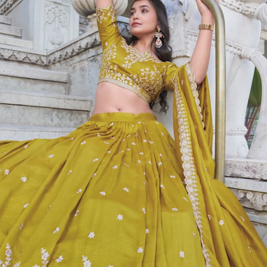 🌷 Lehenga Choli 🌷 A warm embrace of mustard elegance and artistry 🌻