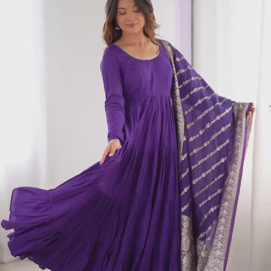 👗 Anarkali Fabric: Heavy Pure Romansilk Chanderi 🌸 Work: Elegant yoke lace work, full churidar sleeves, padded with side zipper, and four-layer gathering for a rich look 🌟 Flair: 9+ meters fully flair gown 👒 Inner: Pure microscrape full lining for comfort 📏 Length: Approx. 54 inches
