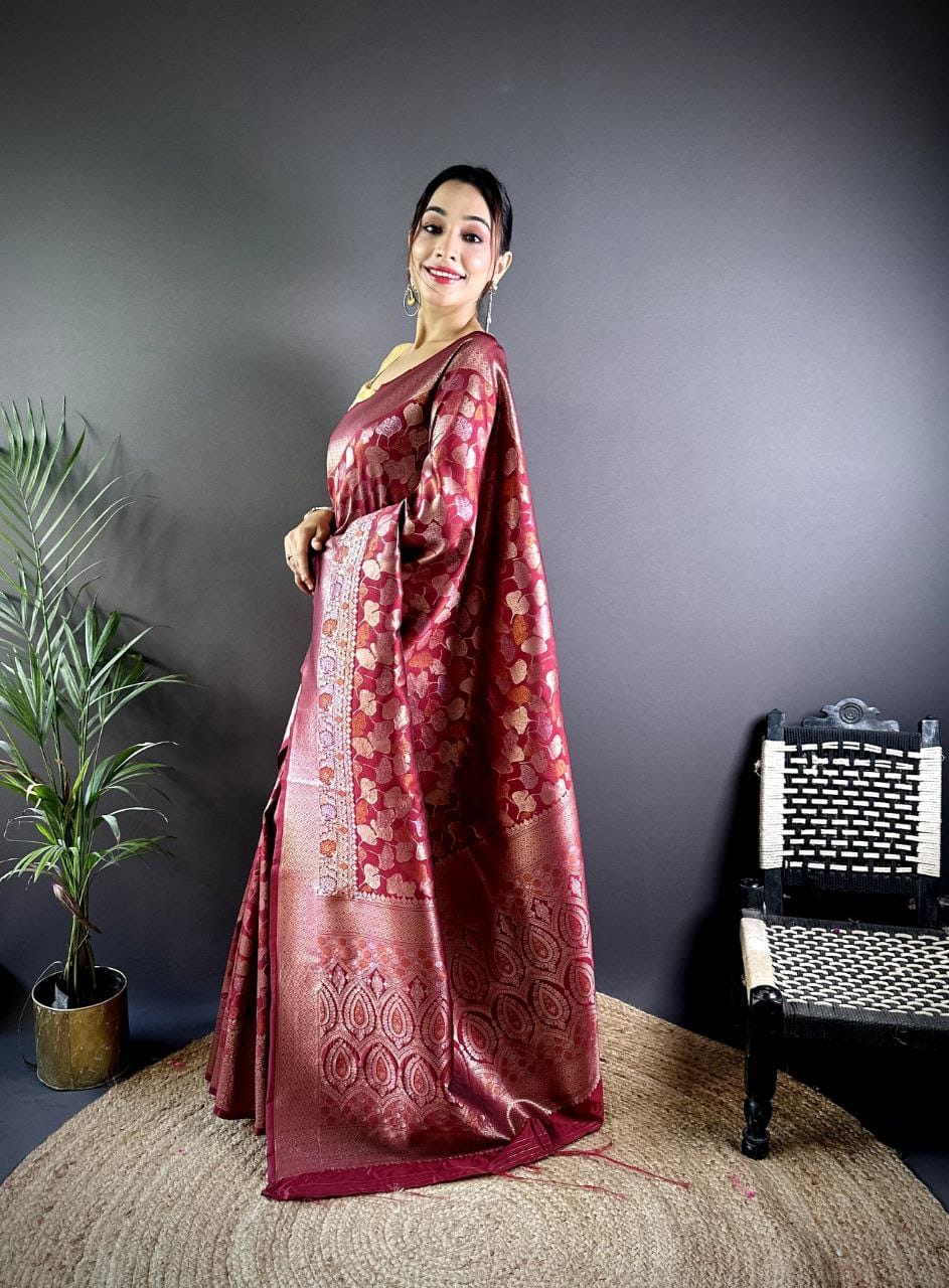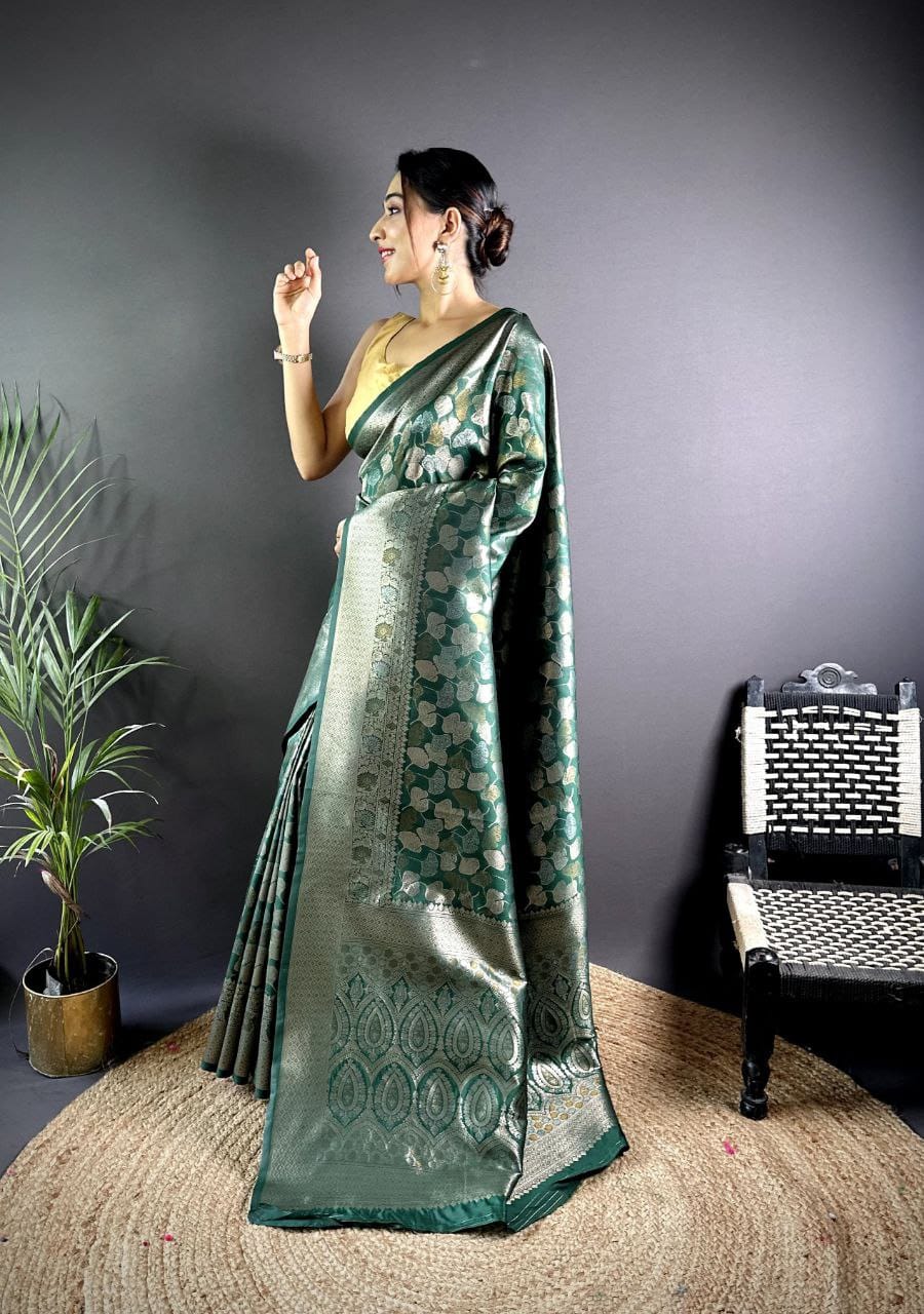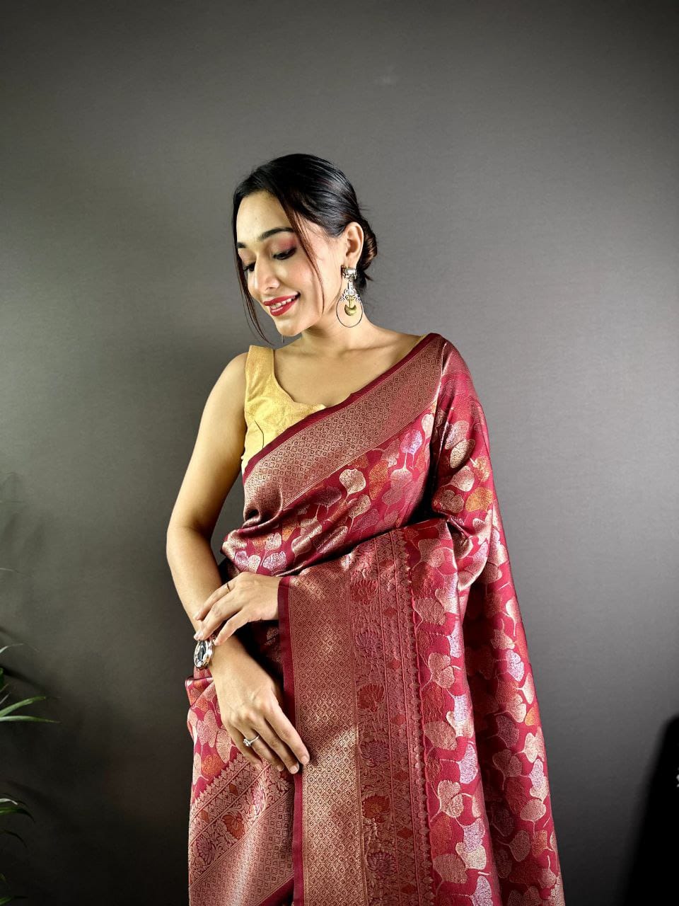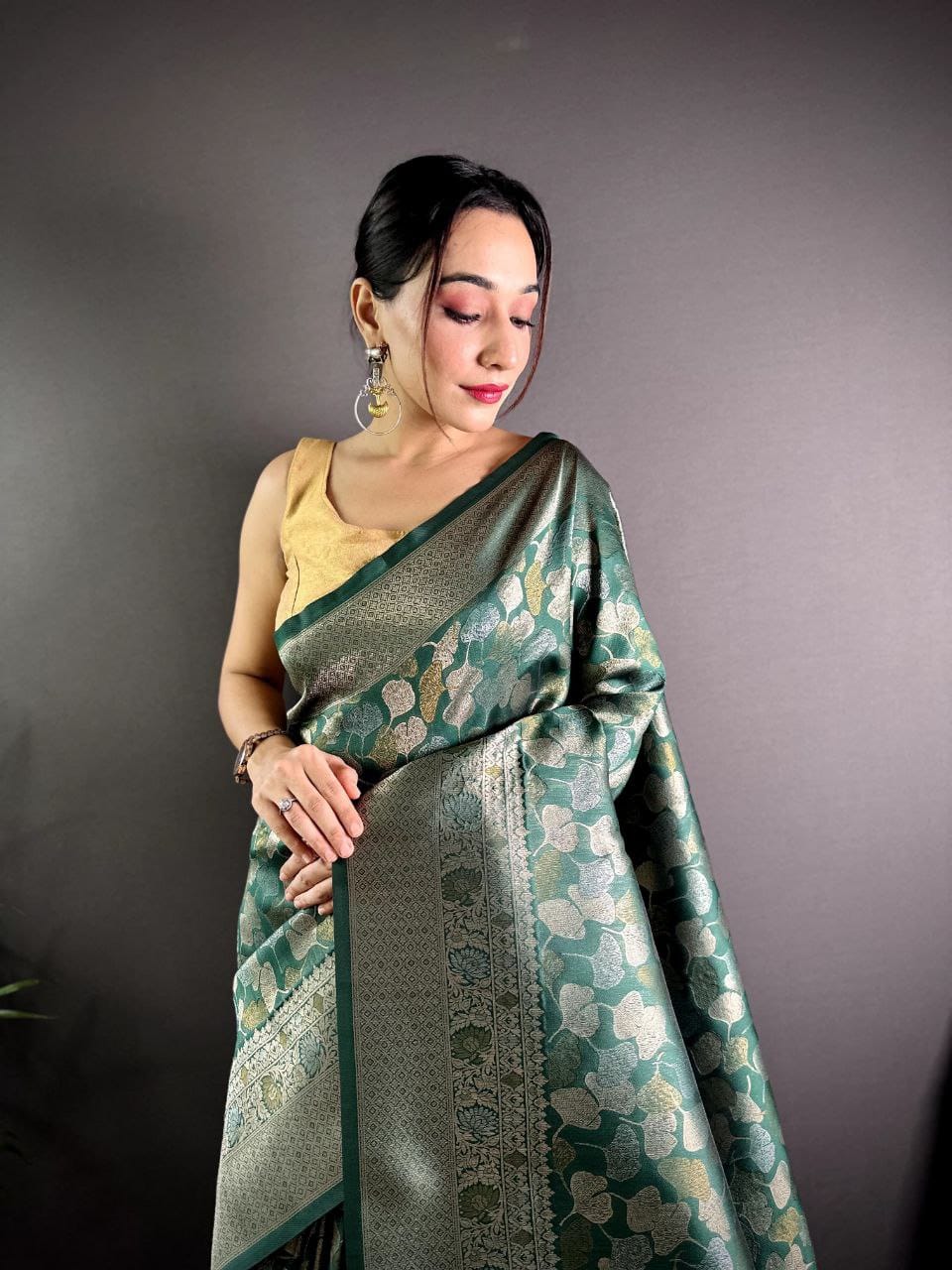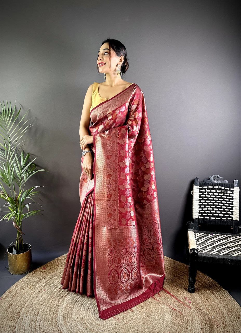 PURE SOFT  SILK SAREE WITH COPPER AND GOLDEN ZARI WEAVED BORDER AND RICH PALLU WITH BEAUTIFUL MOTIFS AND ELEGANT COLOR COMBINATION