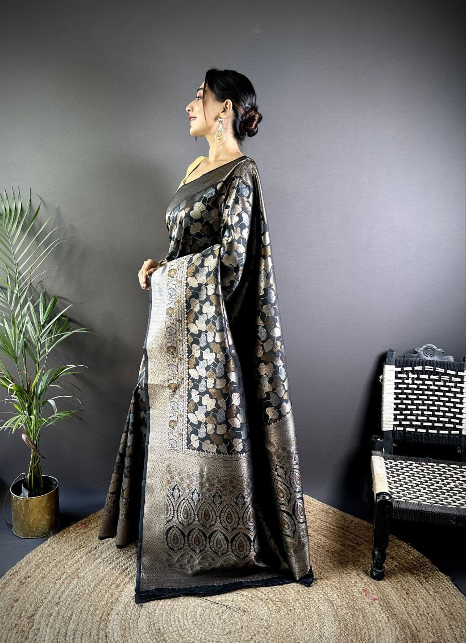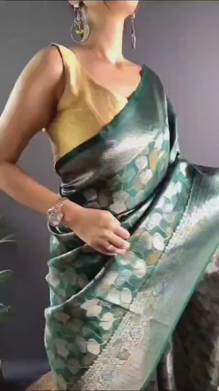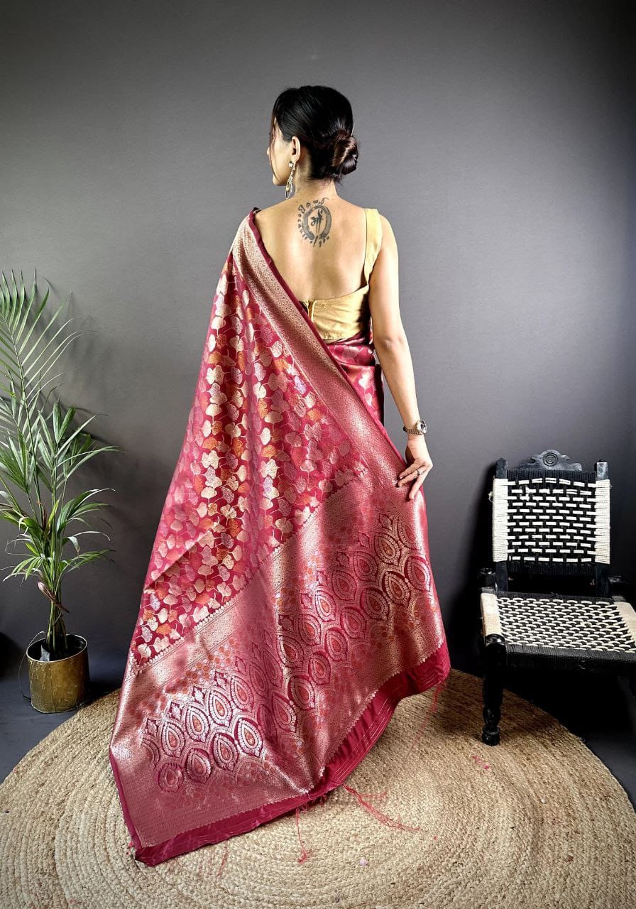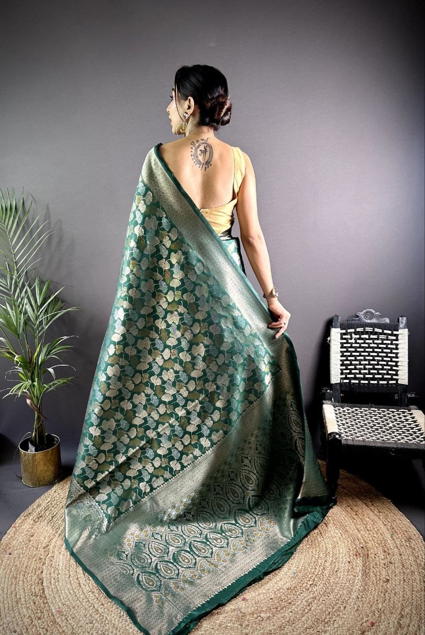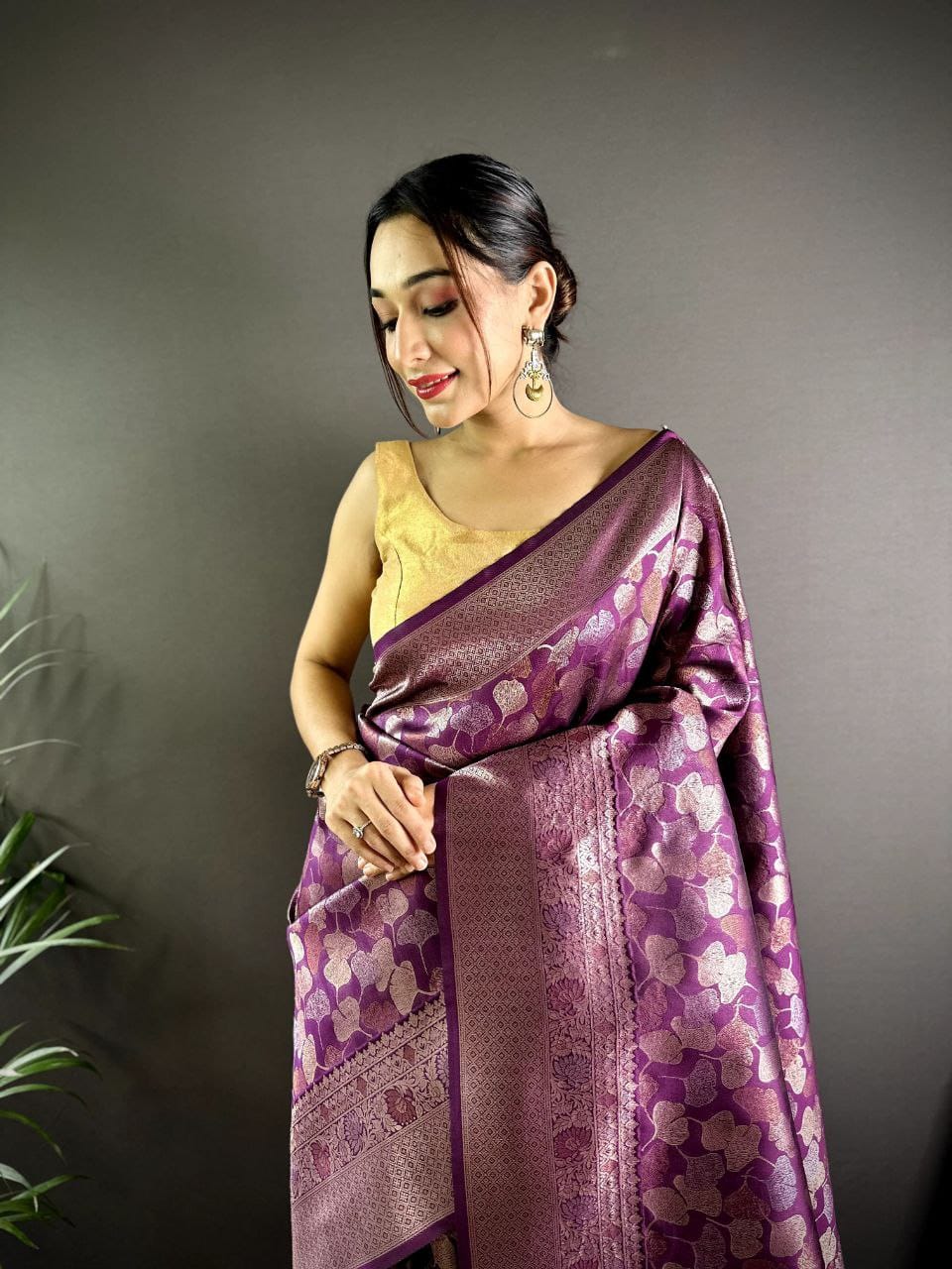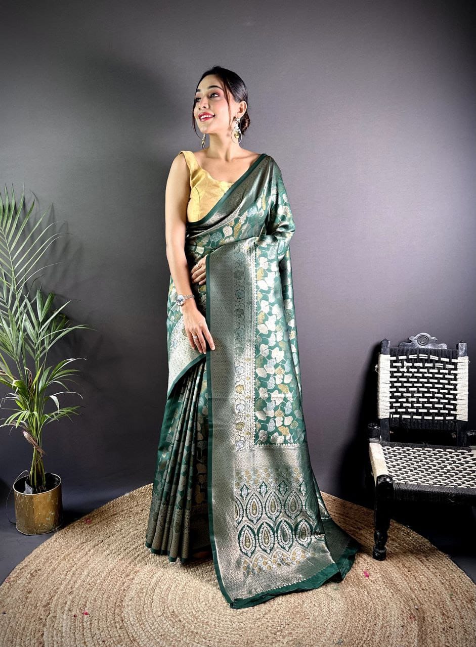 PURE SOFT  SILK SAREE WITH COPPER AND GOLDEN ZARI WEAVED BORDER AND RICH PALLU WITH BEAUTIFUL MOTIFS AND ELEGANT COLOR COMBINATION