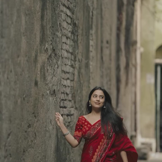 Pure chanderi cotton saree qith hand block ajrakh prints.